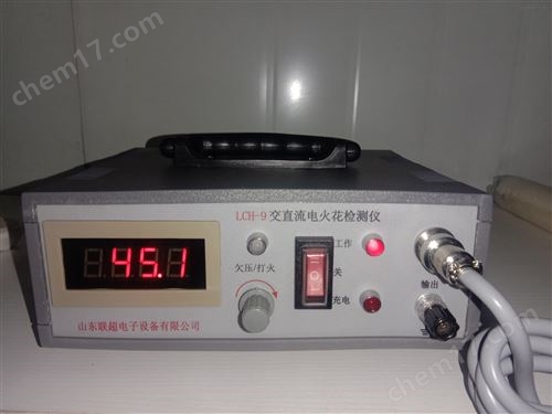 便携式交直流电火花检测仪 电火花检测仪是通过对各种导电基体防腐层表面加一定量的脉冲高压,如因防腐层过薄,漏金属或有漏气针孔,当脉冲高压经过时,就形成气隙击穿而产生火花放电,同时给报警电路送去一脉冲信号,使报警器发出声响报警,从而达到对防腐层检测之目的。